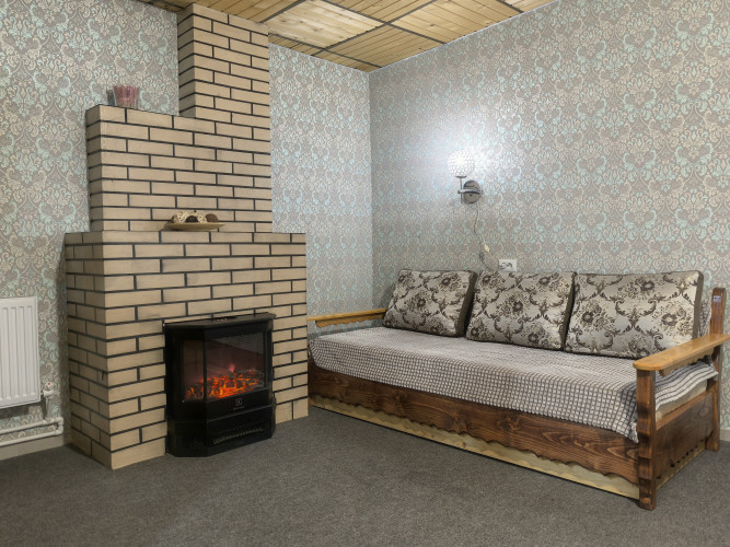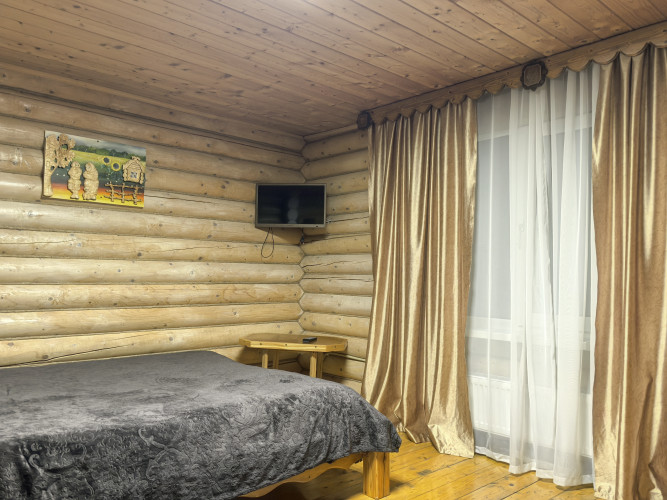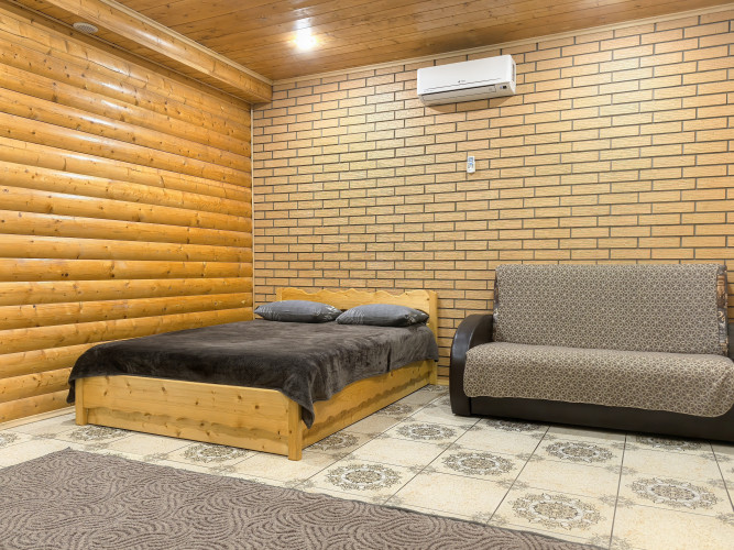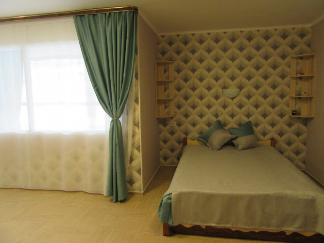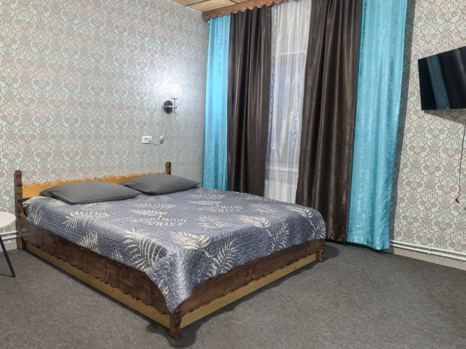 Номер с отдельным входом и балконом. В люксе 1 двухспальная кровать и диван, стол, стулья, шкаф для одежды, микроволновая печь, холодильник, телевизор, стиральная машина. Санузел и душ в номере.Wi-fi и охраняемая парковка на территории - бесплатно. По запросу завтраки и ужины (с доплатой и доставкой ). Дополнительные услуги: прачечная.